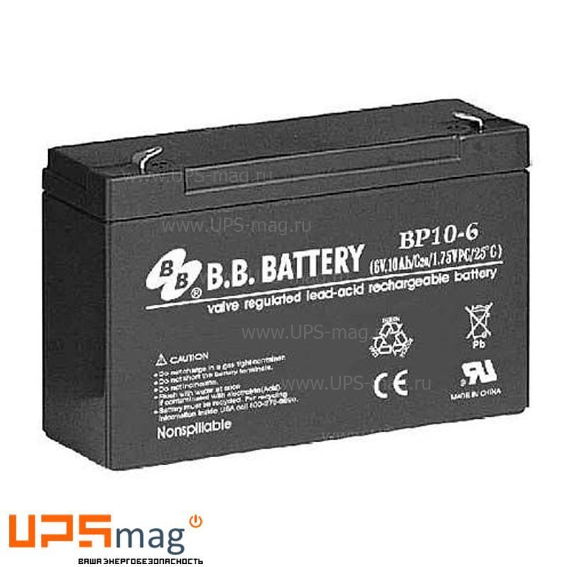 Вы всегда можете сделать заказ и оплатить его онлайн на официальном сайте UPS-Mag. У нас не только низкие цены на такие товары, но и быстрая доставка в ближайшие города региона. BB Battery BP10-6 сертифицирован для продажи в России.