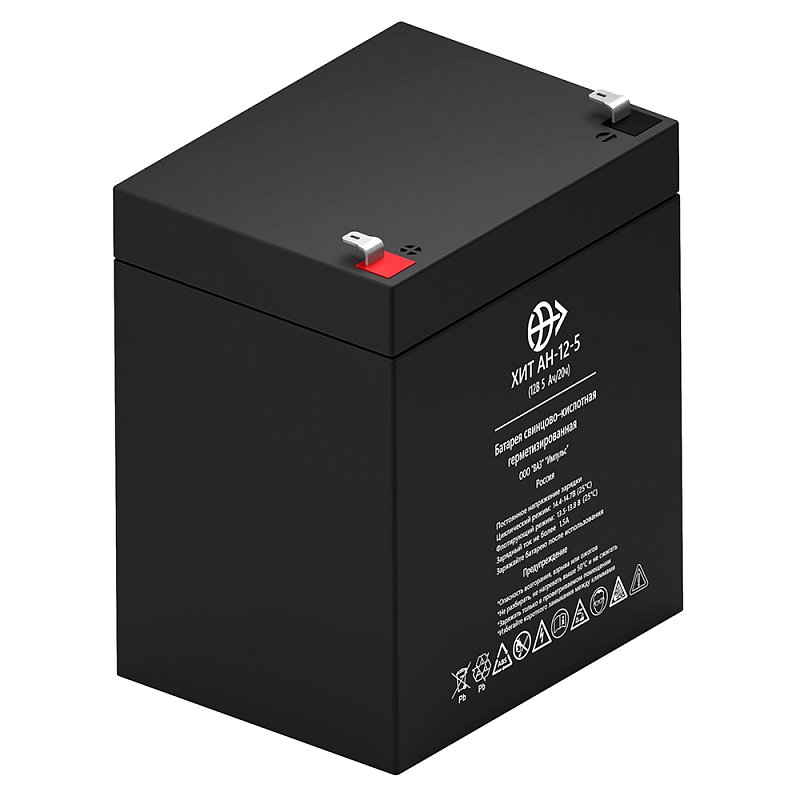 Герметизированный необслуживаемый свинцово-кислотный аккумулятор ВАЗ Импульс ХИТ АН 12-5 (12 В; 5 Ач) производится по техническим условиям ЖТПИ.563415.001 ТУ, что обеспечивает повышенную надёжность, проверенную испытаниями и подходит для ответственных узлов. Батарея изготовлена по технологии AGM: микропористый стекловолоконный сепаратор удерживает кислотный раствор. Это положительно сказывается на сроке службы акб: циклический ресурс по ГОСТ Р МЭК 60896-21 составляет 400 циклов или 10 лет в буферном режиме. ВАЗ Импульс ХИТ АН 12-5 не требует обслуживания, под давлением рекомбинируется более 98% газов.