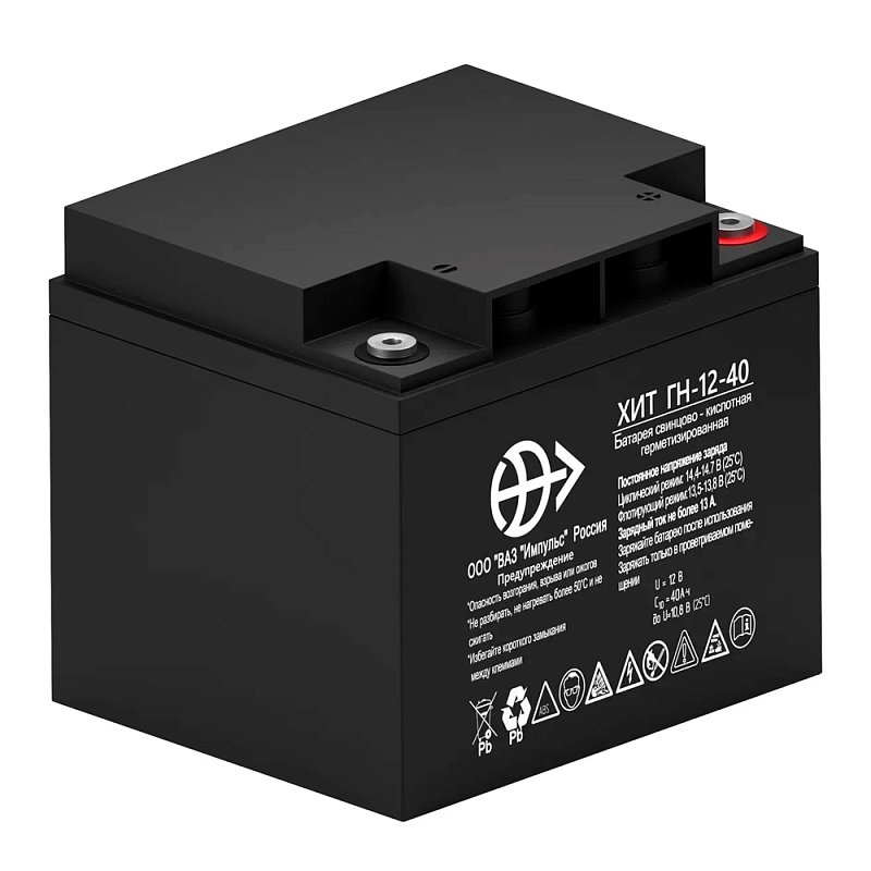 ВАЗ Импульс ХИТ ГН 12-40 выпускается в РФ на заводе полного цикла в городе Великие Луки. Такое расположение производства позволяет существенно сократить время доставки до заказчика и привезти максимально свежие аккумуляторы. ВАЗ Импульс ХИТ ГН 12-40 это аккумулятор премиум класса, который подходит для использования в системах обеспечения бесперебойного питания медицинского оборудования, систем связи и телекоммуникации, морского и речного транспорта, погрузочно-разгрузочной техники, складского хранения, железных дорог.