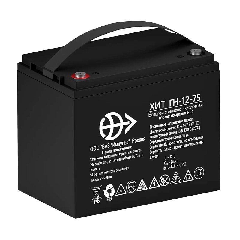 ВАЗ Импульс ХИТ ГН 12-75 выпускается в РФ на заводе полного цикла в городе Великие Луки. Такое расположение производства позволяет существенно сократить время доставки до заказчика и привезти максимально свежие аккумуляторы. ВАЗ Импульс ХИТ ГН 12-75 это аккумулятор премиум класса, который подходит для использования в системах обеспечения бесперебойного питания медицинского оборудования, систем связи и телекоммуникации, морского и речного транспорта, погрузочно-разгрузочной техники, складского хранения, железных дорог.