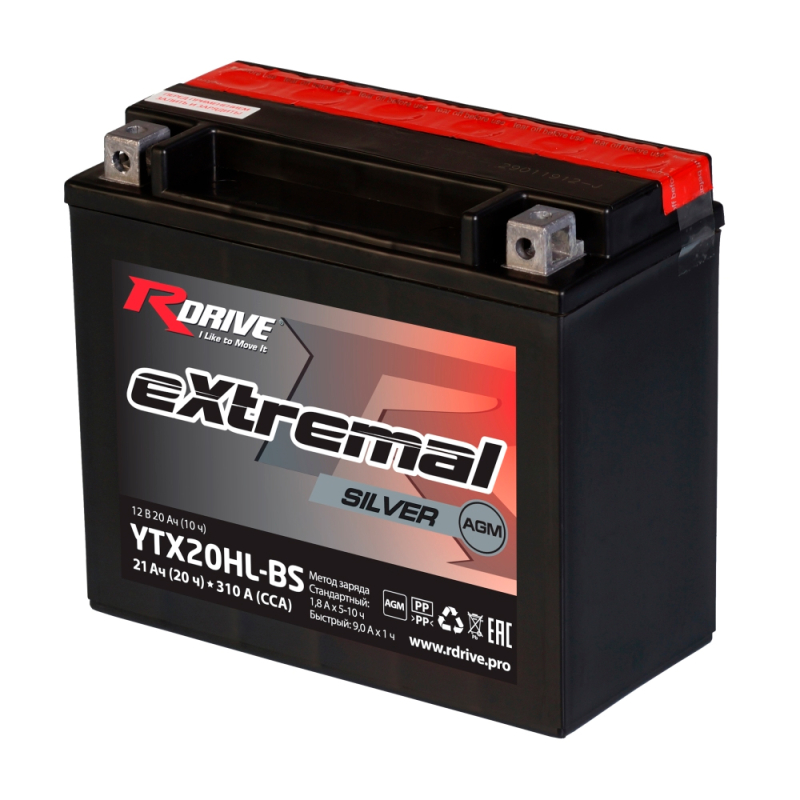 Особенности аккумулятора RDRIVE EXTREMAL SILVER YTX20HL-BS