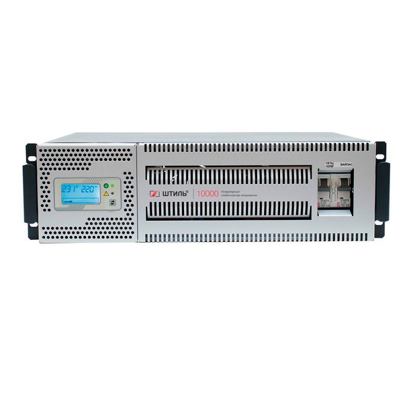 Однофазный (1-1) инверторный стабилизатор напряжения Штиль IS10000RT производится в России мощностью 10 кВА / 9 кВт в универсальном форм-факторе. Он подходит для обеспечения стабильного электропитания такого оборудования, как: видео и аудиоаппаратура, торговые и кассовые аппараты, компьютеры и офисная техника, серверные, системы безопасности, аппараты связи, центры обработки данных. Штиль IS10000RT разработан с учётом специфики российских электрических сетей и полностью соответствует требованиям Таможенного союза (ЕАС). Топология двойного преобразования (Online) обеспечивает целый ряд преимуществ: мгновенная реакция на изменение параметров сети (0 мс), высокая точность коррекции напряжения и выдаёт на выходе идеальную синусоиду. При кратковременном отключении сети нагрузка обеспечивается ещё 200 мс.