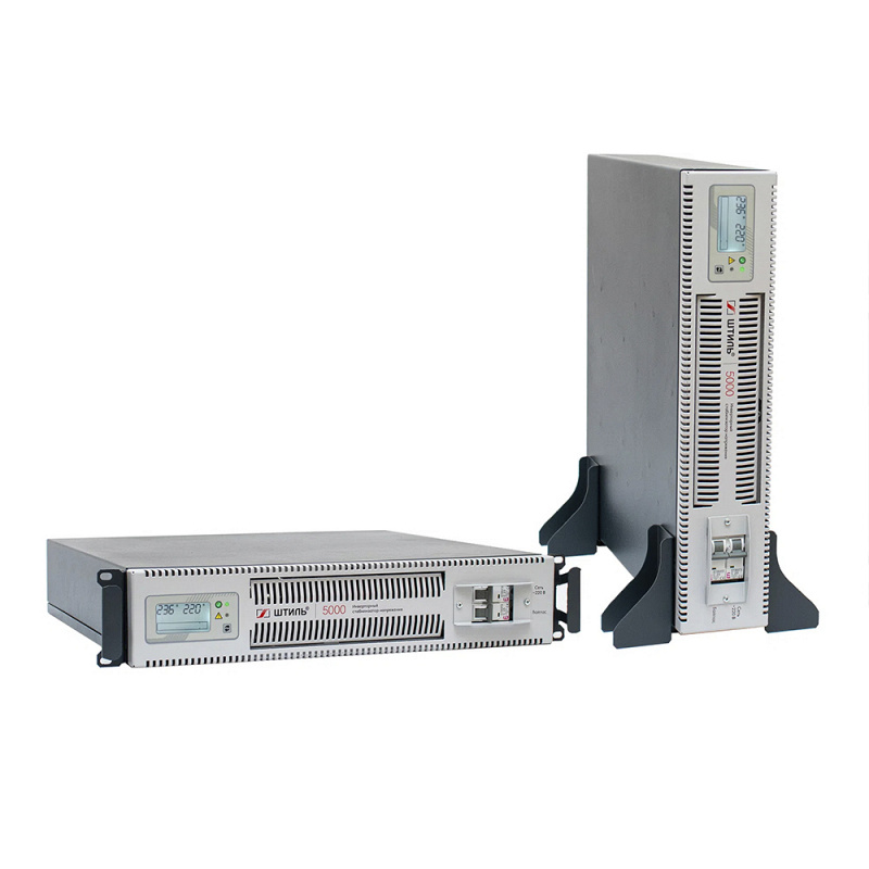 Однофазный (1-1) инверторный стабилизатор напряжения Штиль IS5000RT производится в России мощностью 5 кВА / 4.5 кВт в универсальном форм-факторе. Он подходит для обеспечения стабильного электропитания такого оборудования, как: видео и аудиоаппаратура, торговые и кассовые аппараты, компьютеры и офисная техника, серверные, системы безопасности, аппараты связи, центры обработки данных. Штиль IS5000RT разработан с учётом специфики российских электрических сетей и полностью соответствует требованиям Таможенного союза (ЕАС). Топология двойного преобразования (Online) обеспечивает целый ряд преимуществ: мгновенная реакция на изменение параметров сети (0 мс), высокая точность коррекции напряжения и выдаёт на выходе идеальную синусоиду. При кратковременном отключении сети нагрузка обеспечивается ещё 200 мс.