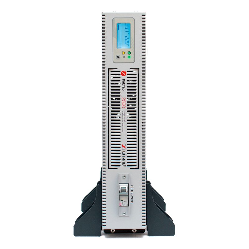 Однофазный (1-1) инверторный стабилизатор напряжения Штиль IS2500RT производится в России мощностью 2.5 кВА / 2 кВт в универсальном форм-факторе. Он подходит для обеспечения стабильного электропитания такого оборудования, как: видео и аудиоаппаратура, торговые и кассовые аппараты, компьютеры и офисная техника, серверные, системы безопасности, аппараты связи, центры обработки данных. Штиль IS2500RT разработан с учётом специфики российских электрических сетей и полностью соответствует требованиям Таможенного союза (ЕАС). Топология двойного преобразования (Online) обеспечивает целый ряд преимуществ: мгновенная реакция на изменение параметров сети (0 мс), высокая точность коррекции напряжения и выдаёт на выходе идеальную синусоиду. При кратковременном отключении сети нагрузка обеспечивается ещё 200 мс.