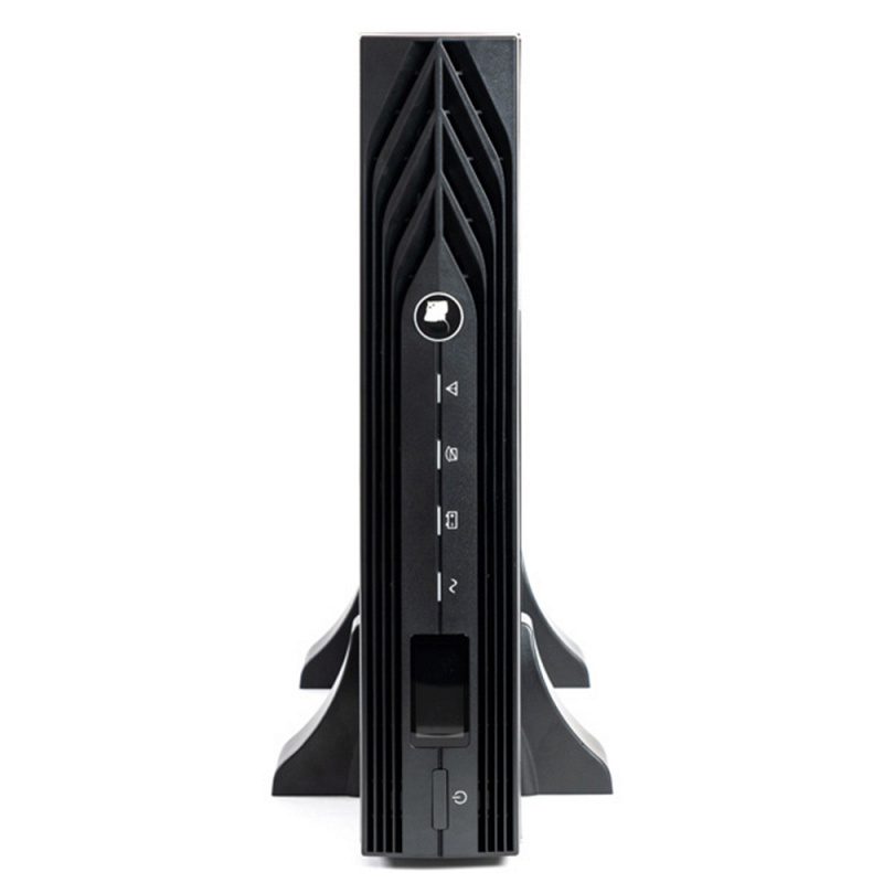 На передней панели SKAT 1000-RACK-ON-2X9 предусмотрен ЖК-дисплей и светодиодная индикация. Они показывают основную информацию о статусе, режиме работы и состоянии батарей. При возникновении ошибки или аварии срабатывает звуковая сигнализация. Управлять и настраивать однофазный ИБП можно напрямую через кнопки на корпусе, либо при помощи компьютера, для этого необходимо подключить дополнительное оборудование в соответствующий слот.