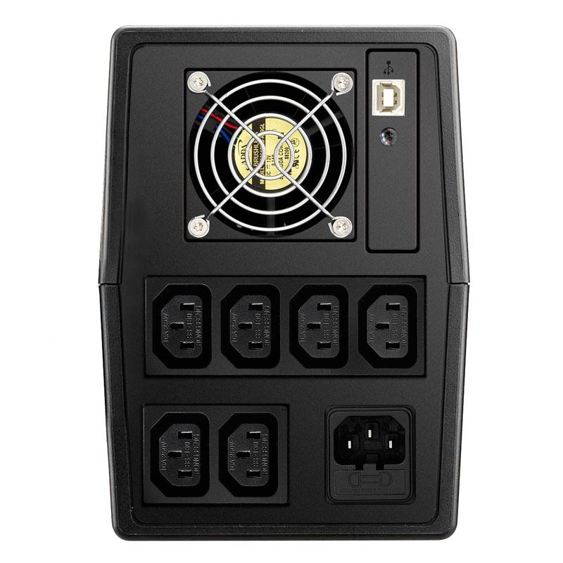 Батареи заряжаются, даже когда ИБП выключен и его можно запустить без напряжения (функция "холодный старт"). ИБП полностью автоматизирован (система AVR) и выводит всю необходимую информацию на ЖК-дисплей. Подходит для питания компьютеров, касс, мониторов и другого чувствительного оборудования.