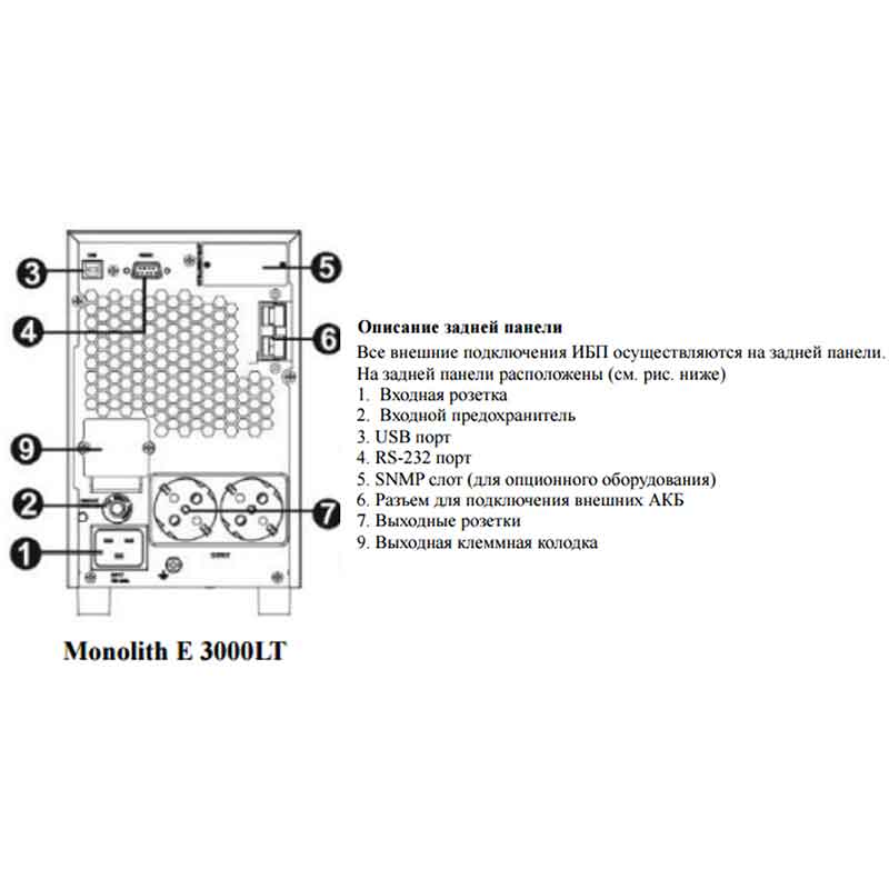 ИБП ELTENA Monolith E 2000LT (1600Вт, внешние АКБ 48В, ЗУ 1-6А)