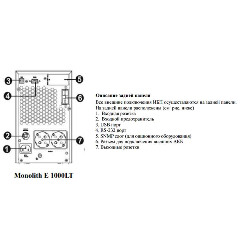 ИБП ELTENA Monolith E 1000LT (внешние АКБ 24В, ЗУ 1-6А)