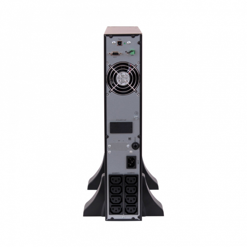 На передней панели онлайн ИБП HIDEN KU91015S-RT для удобства управления и настройки расположен функциональный ЖК дисплей. Через него можно отследить состояние оборудования, батарей, а также выбрать режим работы. На задней панели располагаются выводы, выполненные в виде IEC-розеток. Рядом расположены коммуникационные порты: RS-232, USB, SNMP. Более подробную информацию о дополнительном оборудовании можно получить во вкладке «Аксессуары». Шум от системы активного охлаждения на расстоянии 1 м не превышает 55 дБ, что позволяет использовать HIDEN KU91015S-RT внутри офисов и других рабочих помещений.